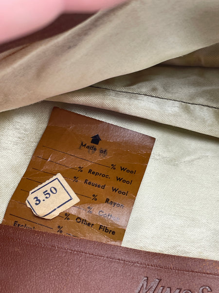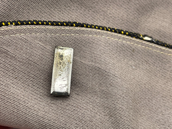 An Officer piped "pinks" coloured garrison cap, made from wool gabardine, this is not the tan cotton variant. No rips or tears and the cap itself is in good condition. The Officer piping is frayed in places, but I will provide a length of replacement Officer piping, so it can be swapped over if you so wish. Measured about 7 to 7 1/8. Has a pin back 1st Lieutenant bar. F-1156 laundry number stamped inside.