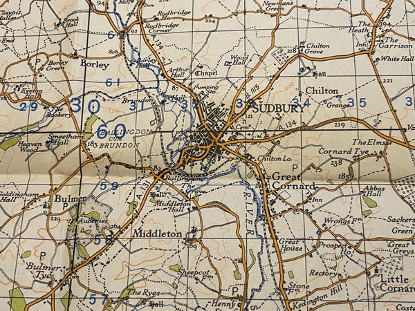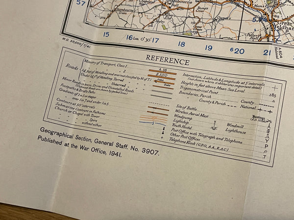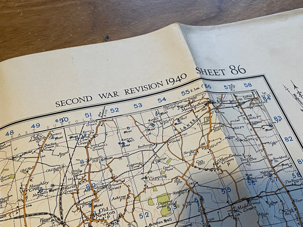 An original War Office map, being the 1940 Revision, mapping dated 1941. Excellent condition for age, no significant rips or tears. Covers a square cornering Gazeley, Mendlesham, Stambourne and Bentley.