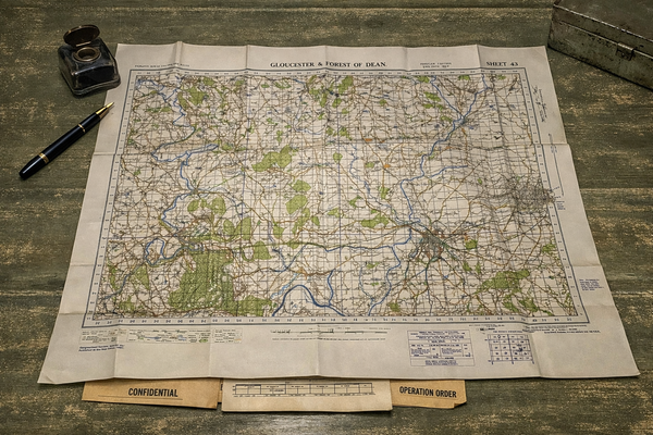 An original War Office map, being the 1940 Revision, mapping dated 1932. Excellent condition for age, no significant rips or tears. Covers a square cornering Hampton Bishop, Westmancote, Staunton and Brimpsfield.