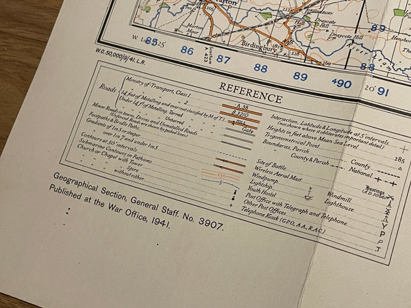 An original War Office map, being the 1940 Revision, mapping dated 1941. Excellent condition for age, no significant rips or tears. Covers a square cornering Hinckley, Medbourne, Walgrave and Marton.