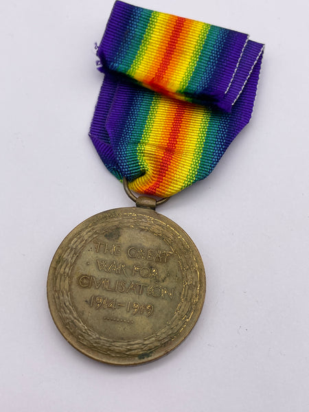 An original British Victory Medal, length of replacement ribbon, correctly named to;