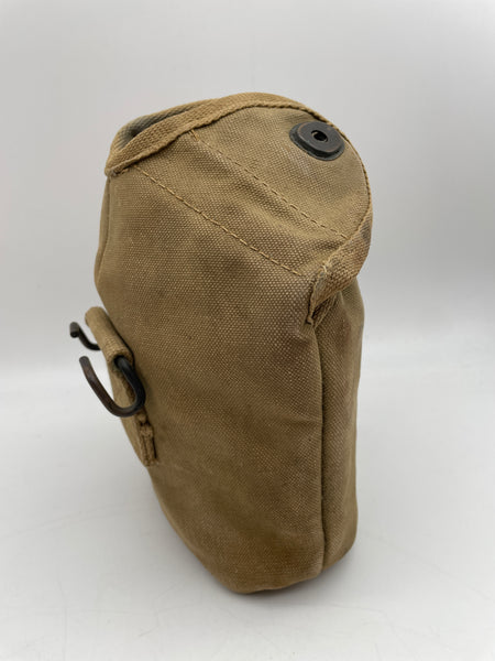 An original canteen cover, made in 1943 by M.E. Co. and stamped British Made. Missing one of the lugs for the press studs, and priced accordingly.