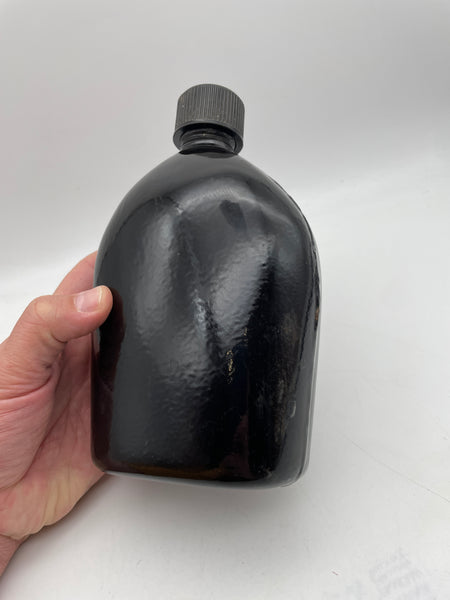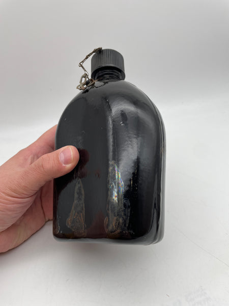 This type of construction was introduced in 1942 due to the shortage of aluminium, when other materials were tested for canteens. The enamelled canteens were made from low grade steel, with the enamel added to aid longevity. However, it was found to be unsatisfactory as if dropped, the enamel flaked away and sometimes, into the drinking water. The low grade steel was then very prone to rusting where the enamel was removed.