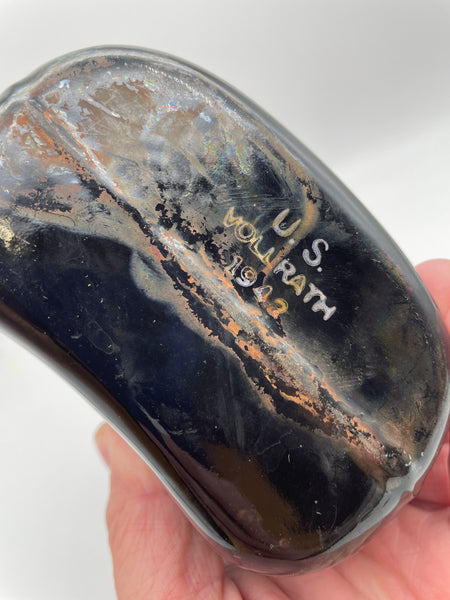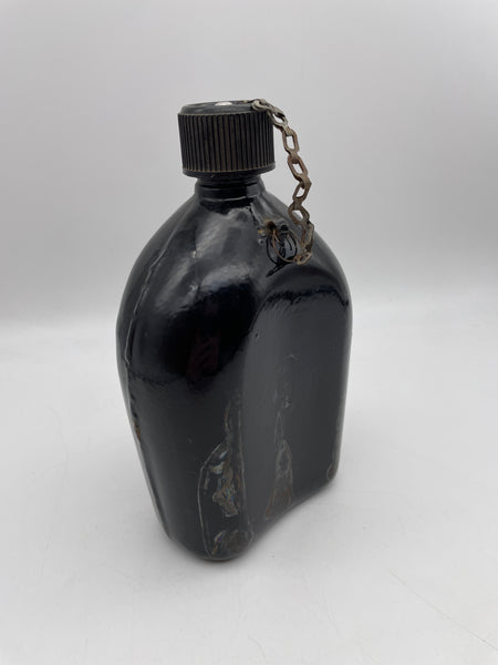 There are a number of dents and dings as these were very prone to and a couple of spots where the enamel seems to have been retouched. Corrosion present to bottom. Cap may have been replaced and priced accordingly.