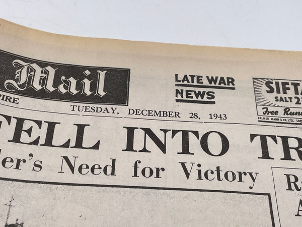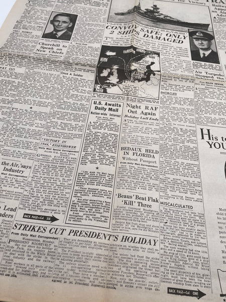 Complete newspaper, not a reproduction, part of a large and well looked after collection. 4 pages. Covers the sinking of the Scharhorst which had been chased down and sunk some 36 hours earlier.