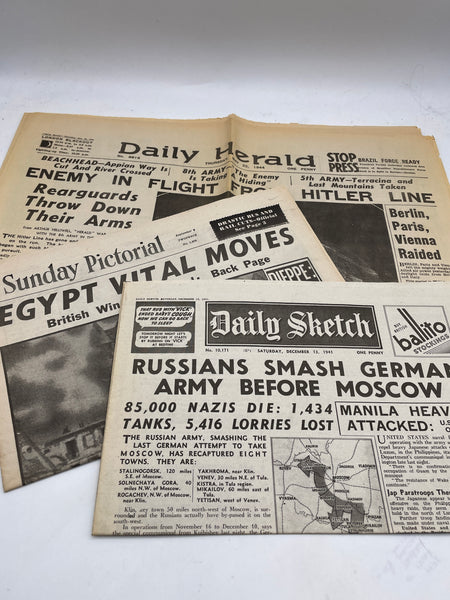 A nice collection, all in good condition for age, comprising five wartime dated papers including the Daily Sketch, the Daily Herald and the Sunday Pictorial. The papers are complete and original items, not reproductions.